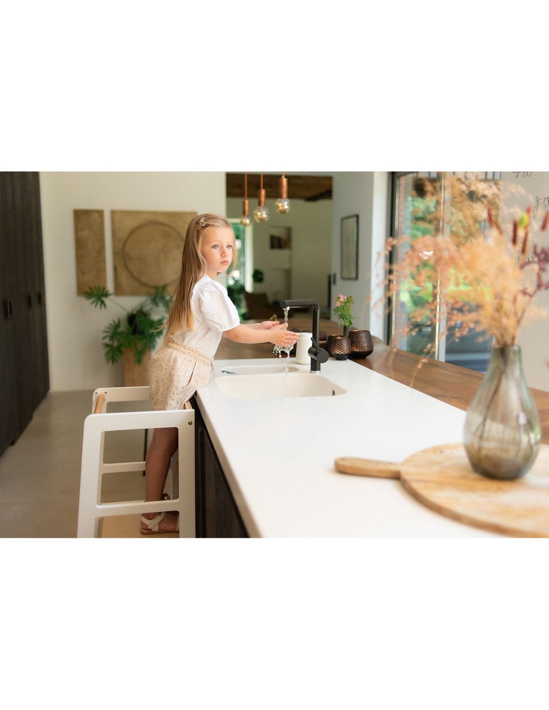 La torre Montessoriana consente ai bimbi di raggiungere superfici per loro alte come il tavolo, il lavello.. il tutto in piena sicurezza.