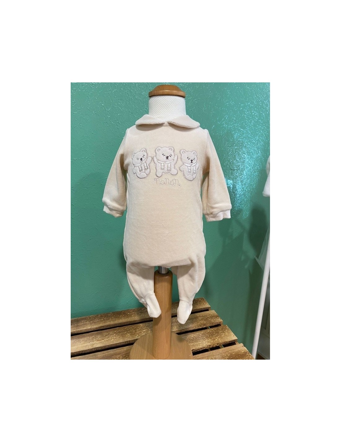 Deliziosa tutina in ciniglia, impreziosita dalla presenza di 3 orsetti. Abbottonatura inferiore e posteriore.