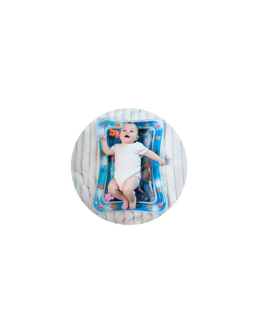 I pesciolini all’interno, aiutano a migliorare la coordinazione occhio-mano, intrattenendo per ore di sano divertimento. Inoltre la postura prona consente di rinforzare i muscoli del collo e della schiena, fondamentali nella crescita.