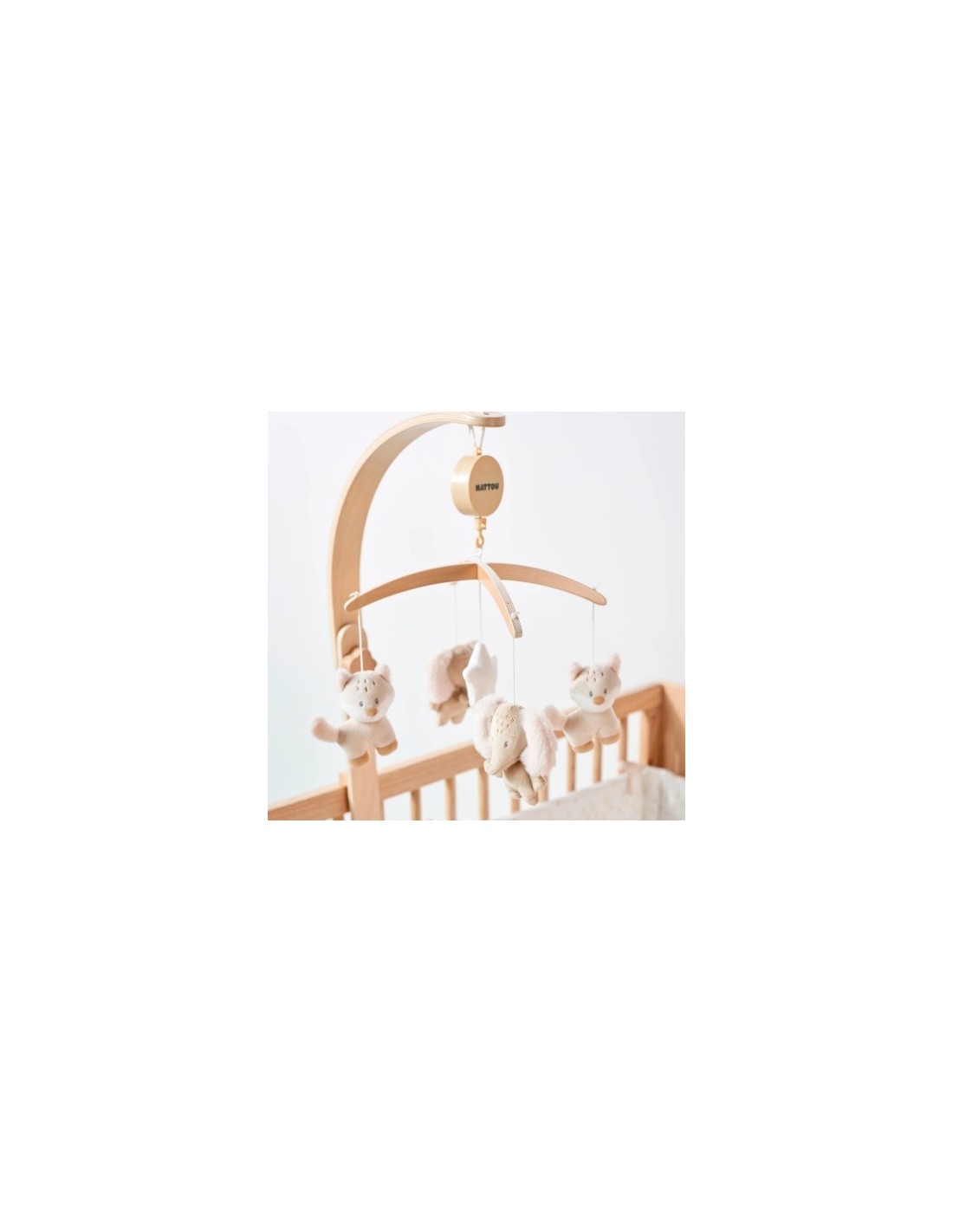 L'adorabile giostrina musicale in legno Nattou è dotata di piccoli animaletti  che girano e si muovono al ritmo della ninna nanna. La giostrina può essere fissata comodamente e saldamente al lettino.