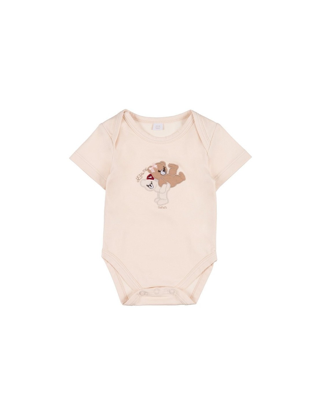 Adorabile body in cotone a maniche corte, arricchito da due teneri orsetti e la scritta You&Me. Dotato di bottoncini automatici nella parte inferiore.