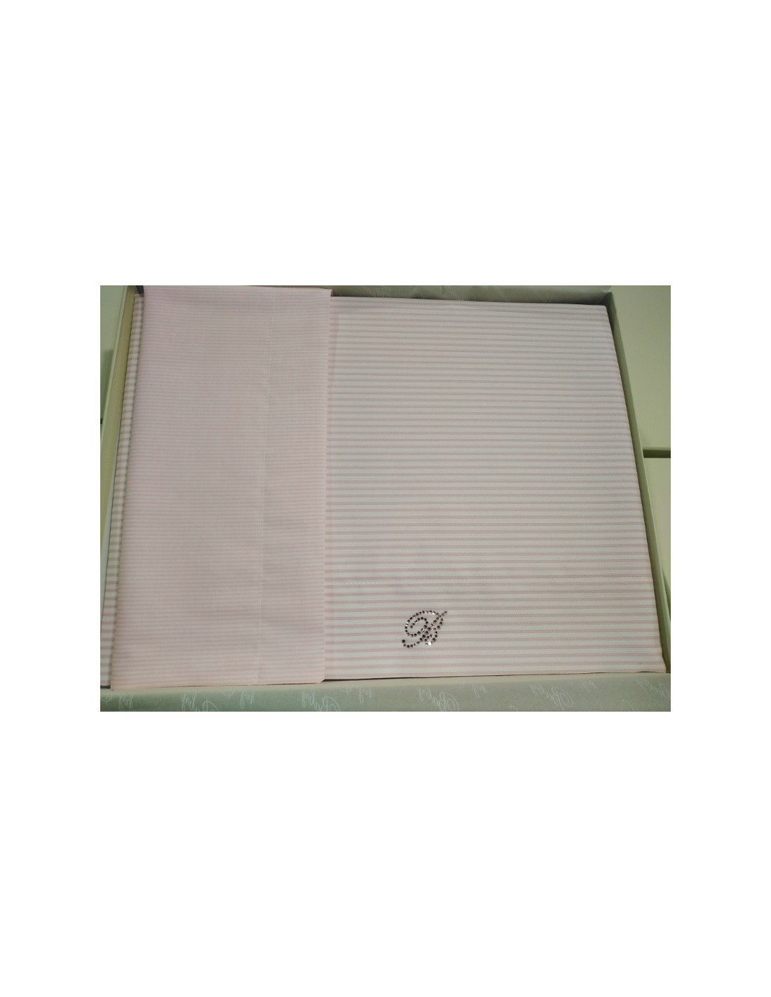 Il set lenzuola culla/carrozzina Baby Marina Blumarine è un prodotto made in Italy,  caratterizzato da stampe da stampe a righe e logo in cristalli Swarovski.