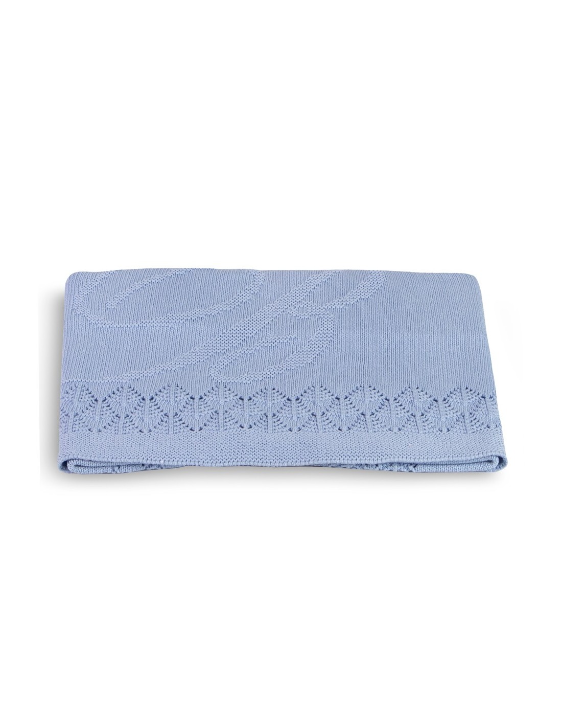 La copertina Baby Giardini Blumarine è caratterizzata  da disegno in jacquard piazzato con bordo punzonato.