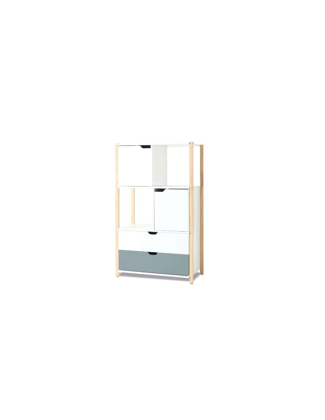 Questo modello dispone di 2 cassetti inferiori per consentire al bambino di riporre vestiti o giocattoli e di 4 blocchi di ante nella parte superiore che possono essere utilizzati per creare una libreria montessoriana per bambini.