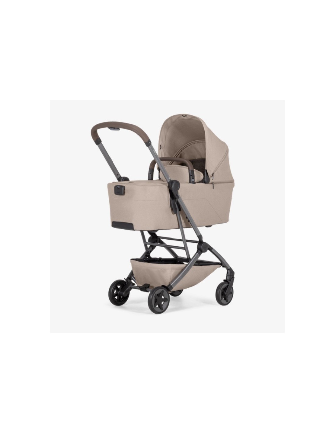 Accompagna il neonato nel passaggio dalla navicella al passeggino, grazie alla sua forma avvolgente che guarda il genitore.
