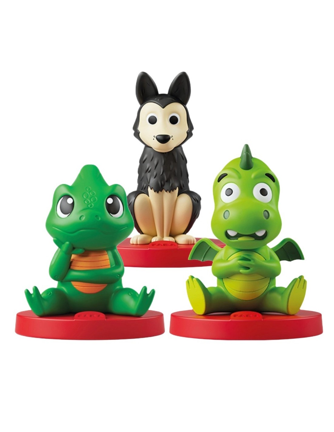 Il Kit Liberiamo le Parole include: 1 Cassa Raccontastorie Faba, 1 Personaggio Ele l’elefante, 1 Personaggio Cappuccetto Rosso, Cuffie Dudun, 1 Libro Guida “Siamo arrivati?!?!”,1 Cavo USB.