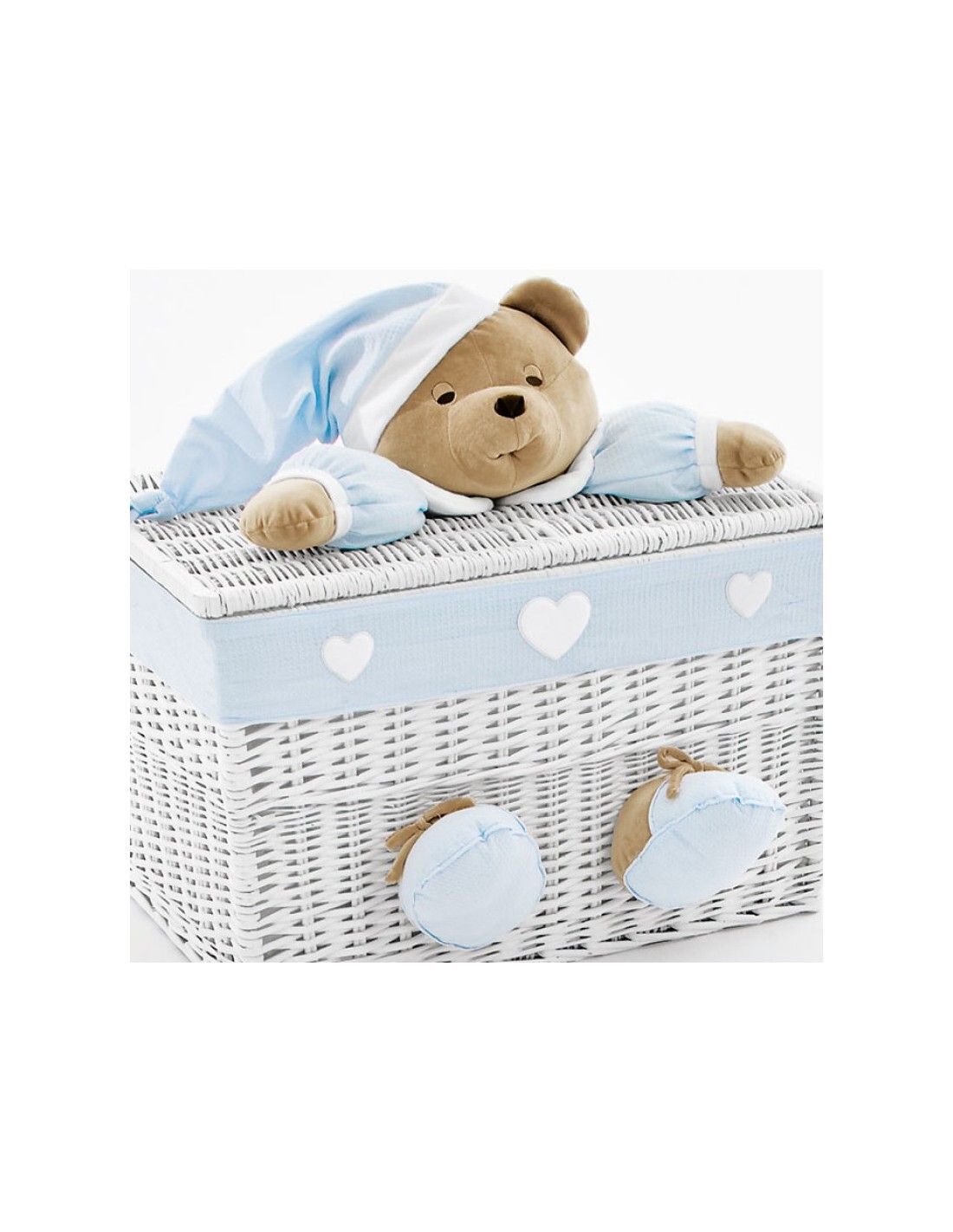 -Composizione: baule in vimini; applicazione 100% cotone