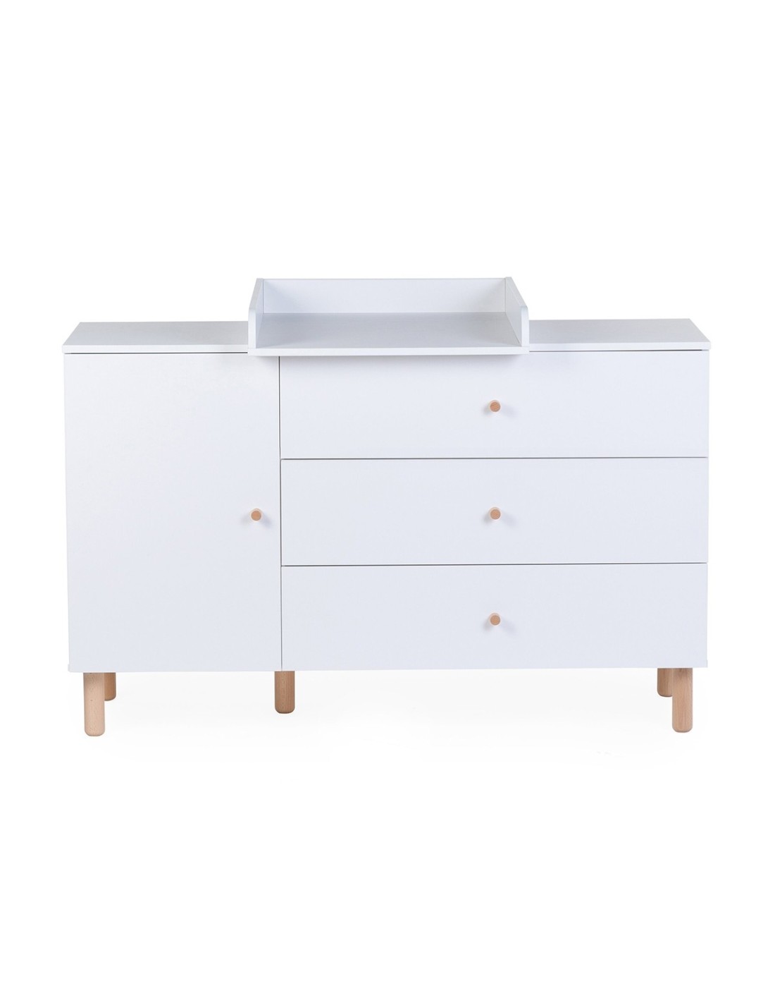 La cassettiera Wonder White è composta da 3 cassetti e un mobile con due ripiani. Il fasciatoio incluso è l'ideale per cambiare il tuo bambino in tutta comodità.