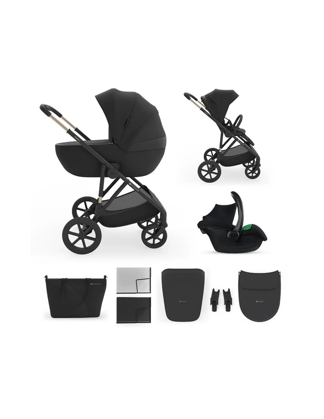 Kinderkraft Prime 3 compende la navicella, il passeggino dotato di doppio materassino con seduta traspirante, ovetto Mink Pro I-Size.
