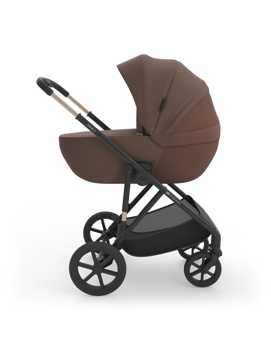 Kinderkraft Prime 3 compende la navicella, il passeggino dotato di doppio materassino con seduta traspirante, ovetto Mink Pro I-Size.