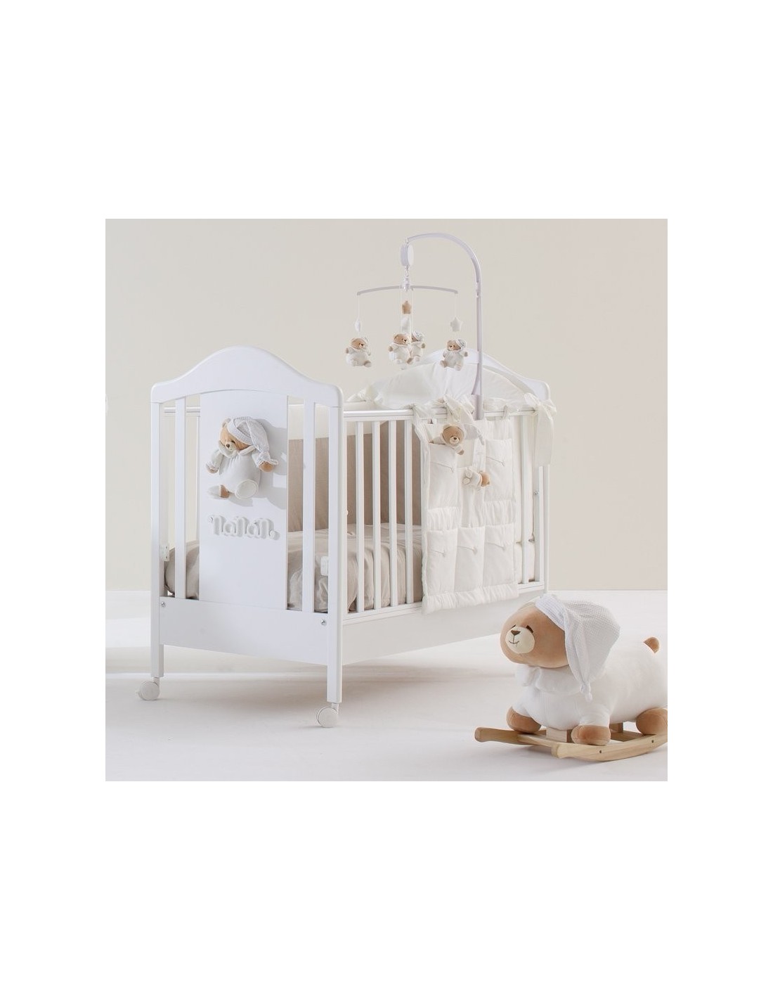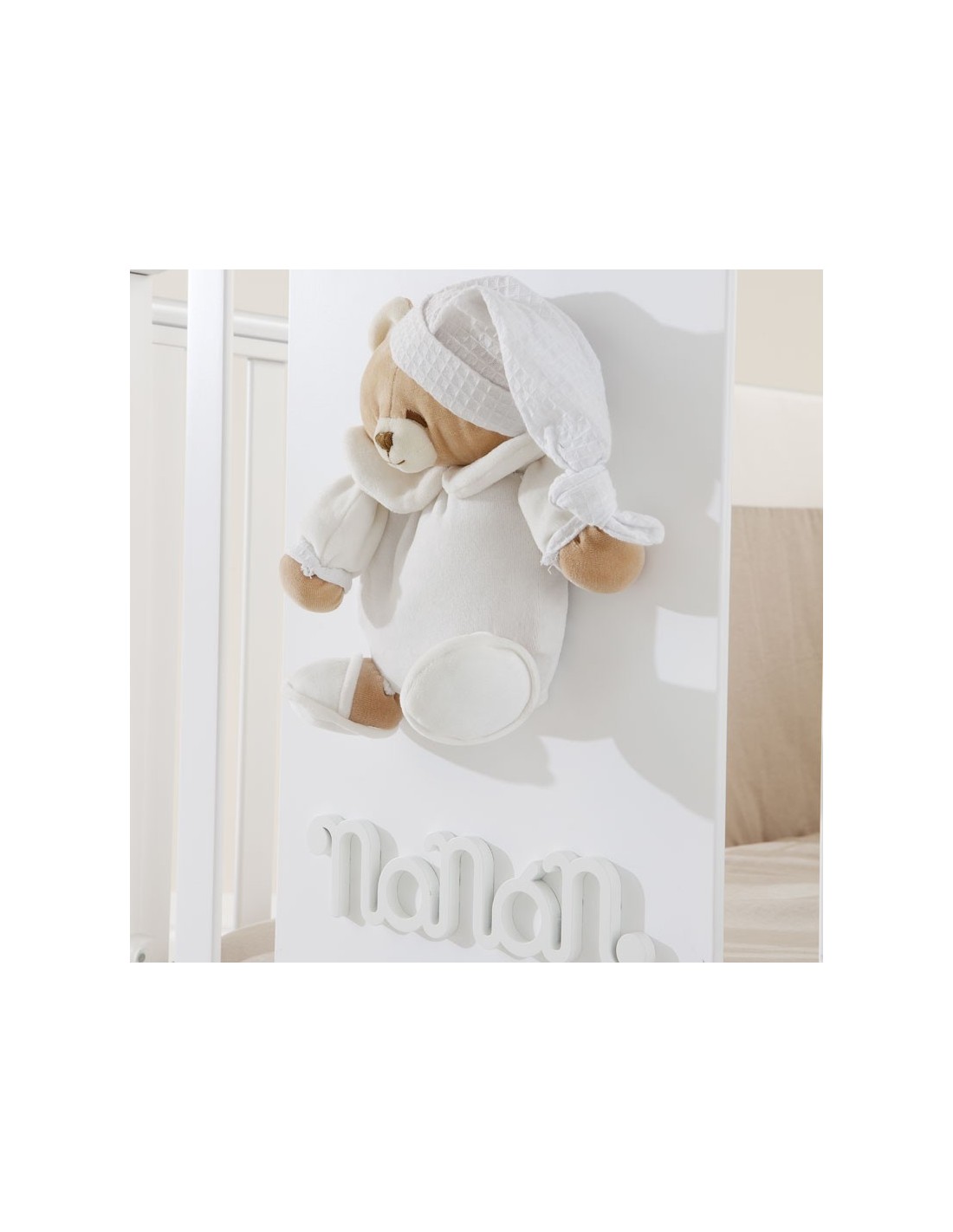 Il lettino Nanan Tato baby è dolcemente impreziosito da peluche Tato e scritta “Nanan” applicati.