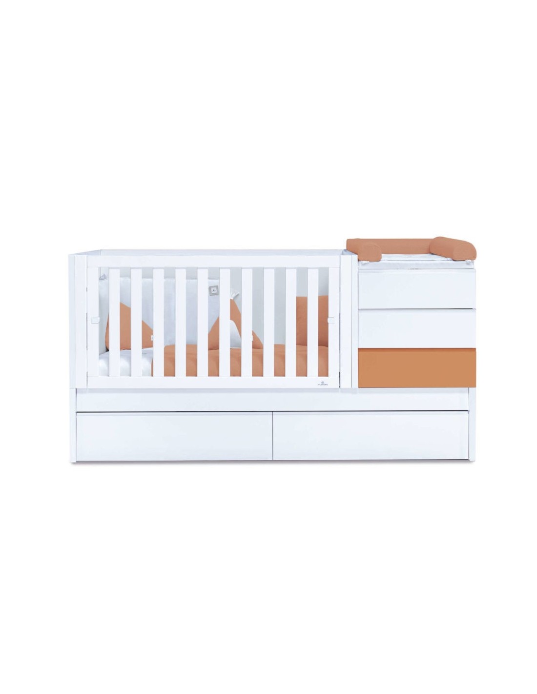 Dotato di un comodo fasciatoio per il bambino e sponda lettino ribassabile.