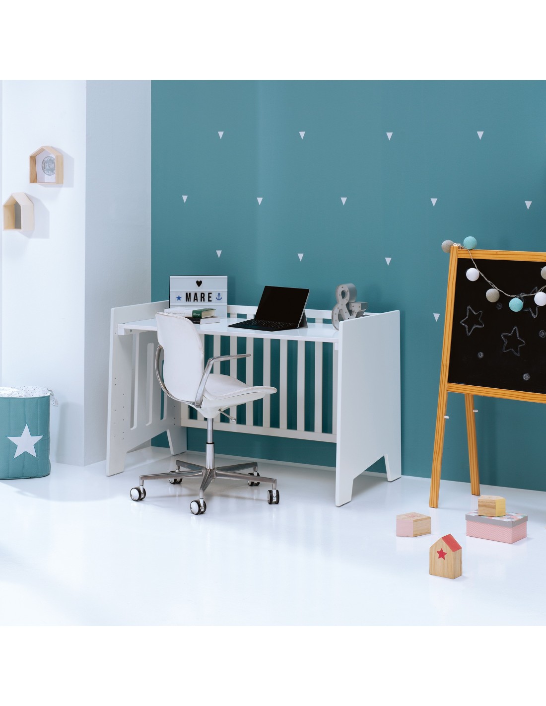 Trasformabile in scrivania infantile di 120x60, senza l’utilizzo di elementi aggiuntivi.