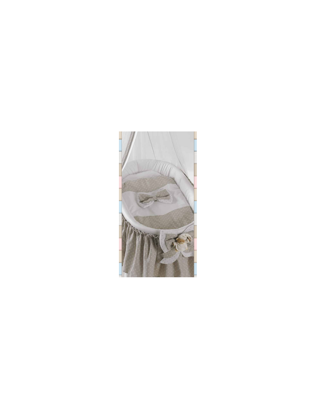 La culla Roman Baby ovale in vimini è caratterizzata da struttura in giunco e rivestimenti 100% cotone, colori atossici e imbottiture anallergiche.