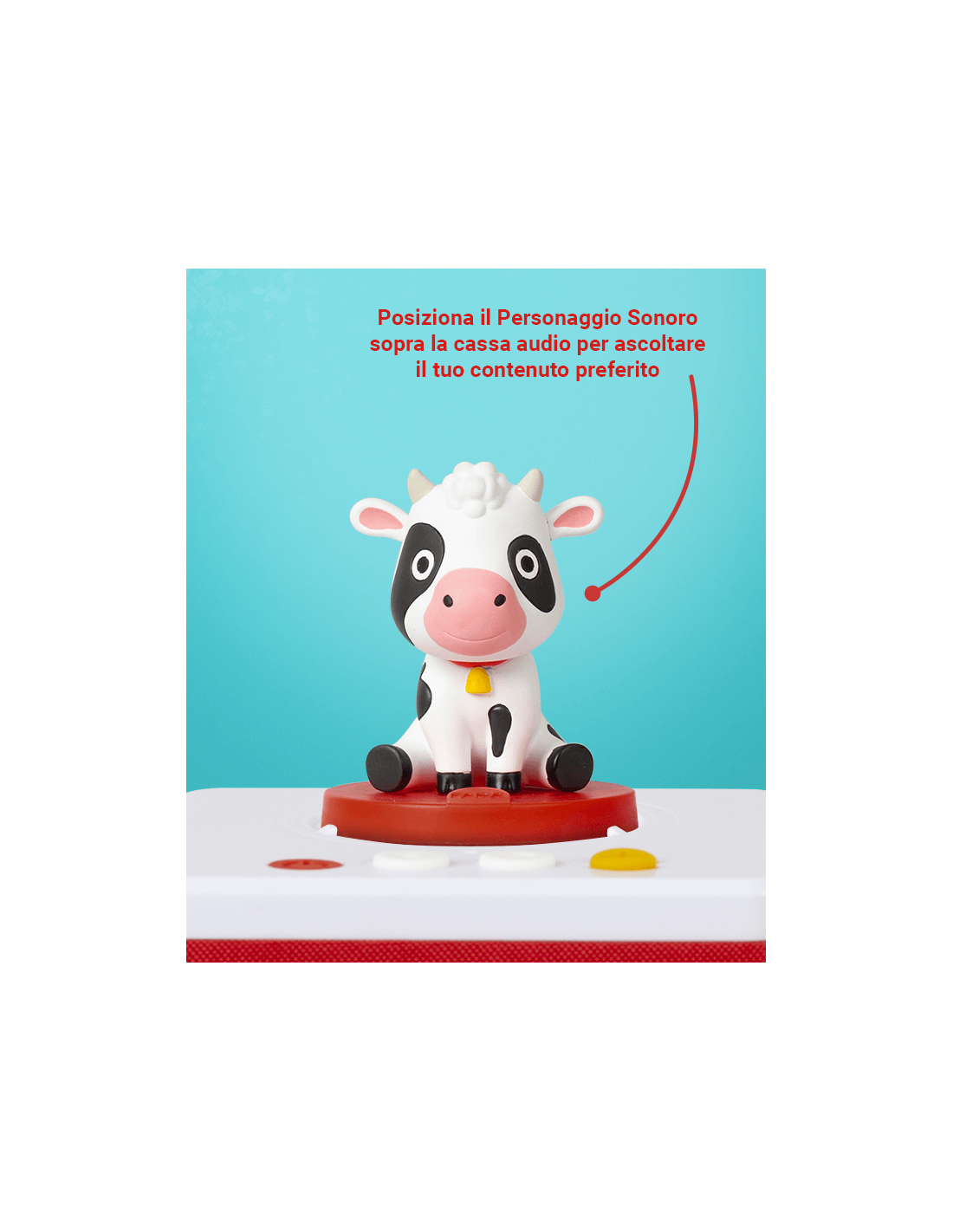 Posiziona il personaggio sonoro sopra la cassa audio del raccontastorie. Adatto ai bambini dai 0 ai 4 anni.