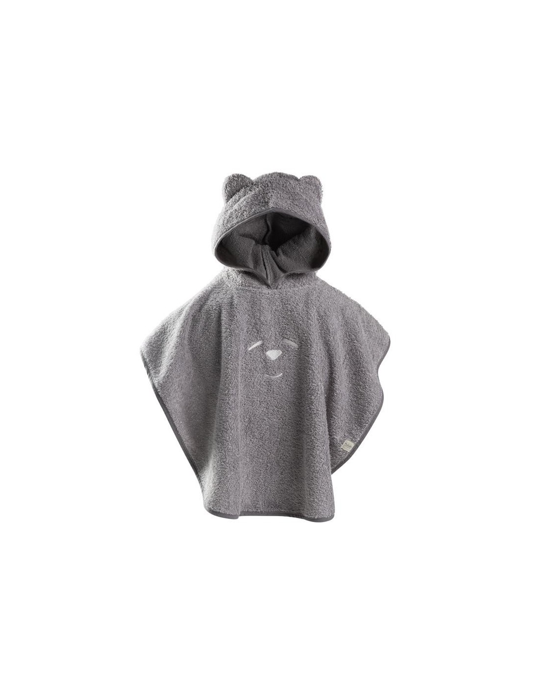 L’accappatoio poncho Nanan della collezione Studio è dotato di un comodo  cappuccio con simpatiche orecchie ed una faccina ricamata.