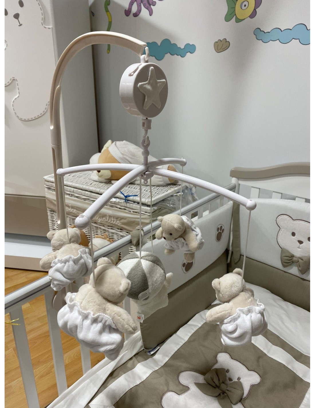Si aggancia al lettino e, grazie ai movimenti armoniosi dei morbidi ciondoli e alla dolce melodia del carillon,aiuta il bambino a scivolare dolcemente nel sonno .