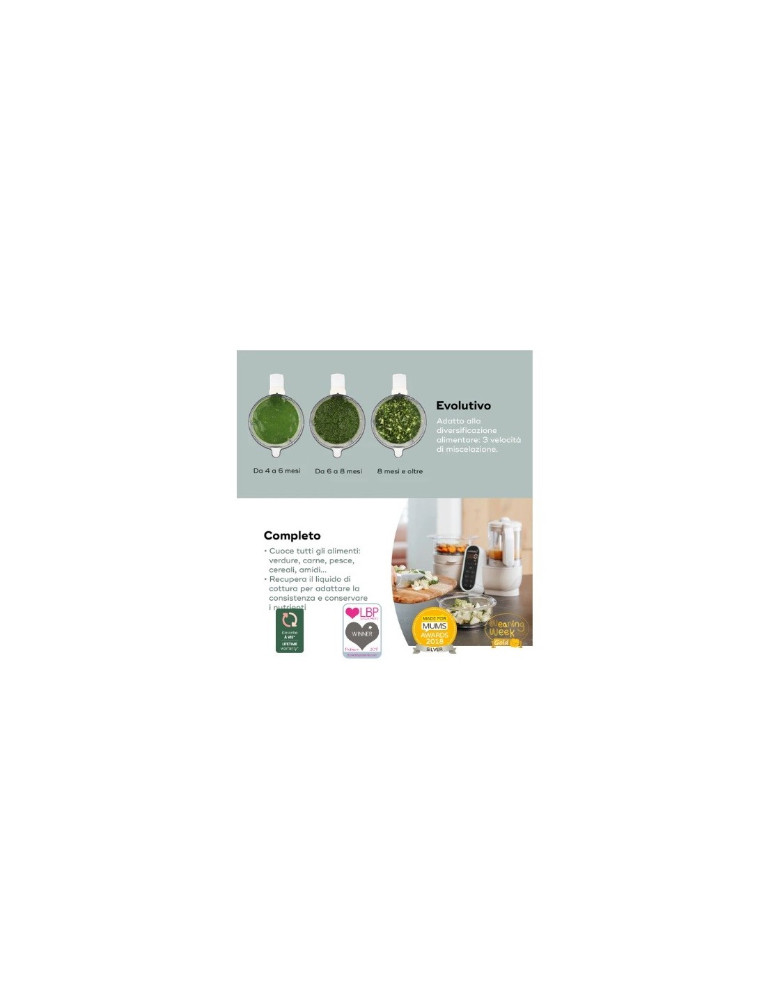 Nutribaby è molto più di un robot da cucina. Fornisce il corretto sviluppo del bambino: cottura controllata, consistenze adattate, preparazione di pappe sane, varie e saporite.