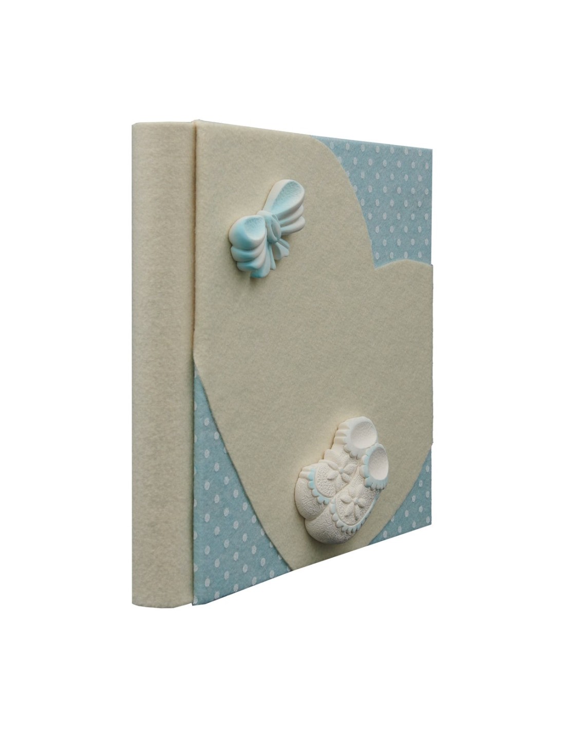 Mini album in pannolenci con applicazioni in resina, 24x24 22 fogli con diario nascita.
