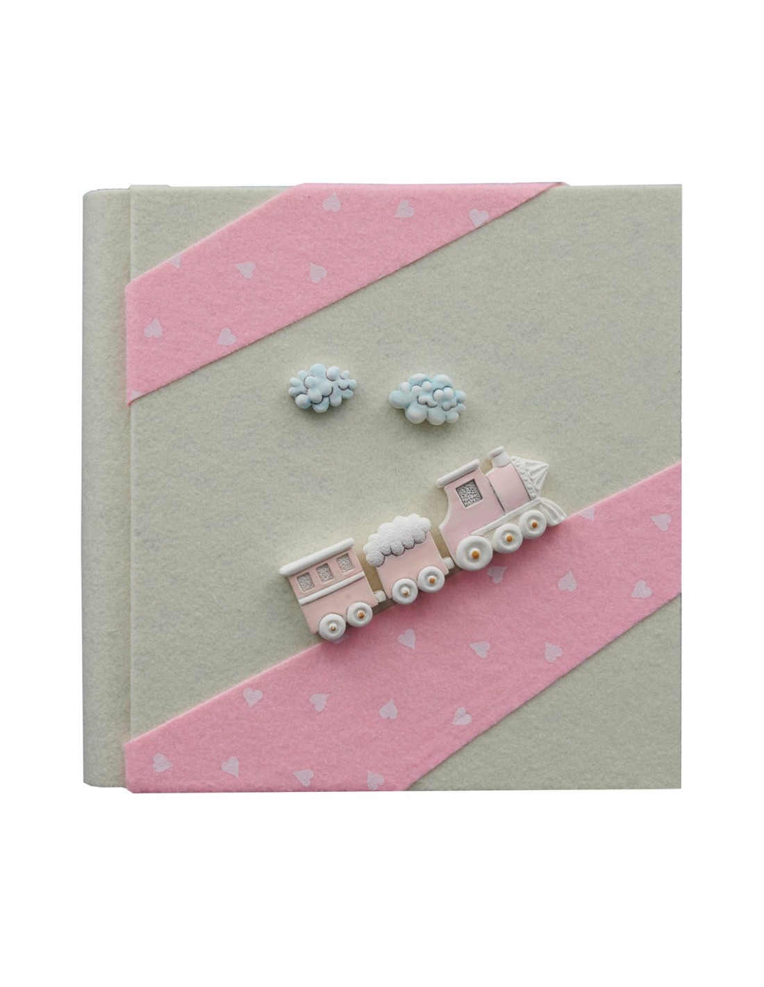 Mini album in pannolenci con applicazioni in resina, 24x24 22 fogli con diario nascita.