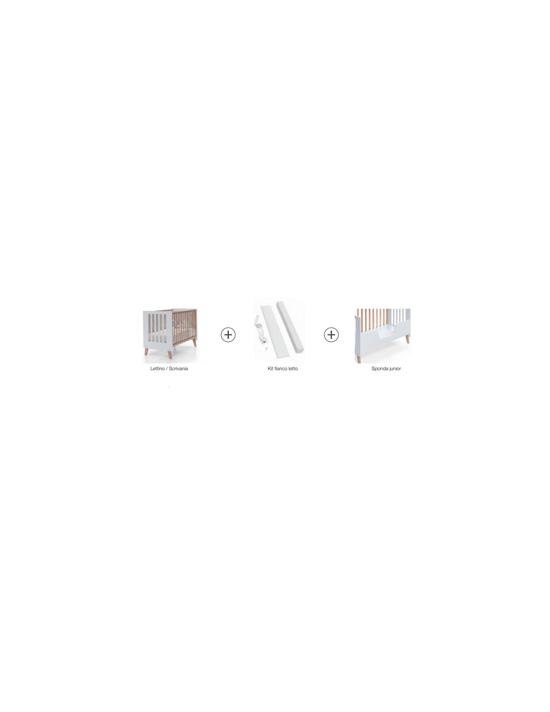 Accessori inclusi: kit co-sleeping, sponda junior, set piumone e paracolpi.