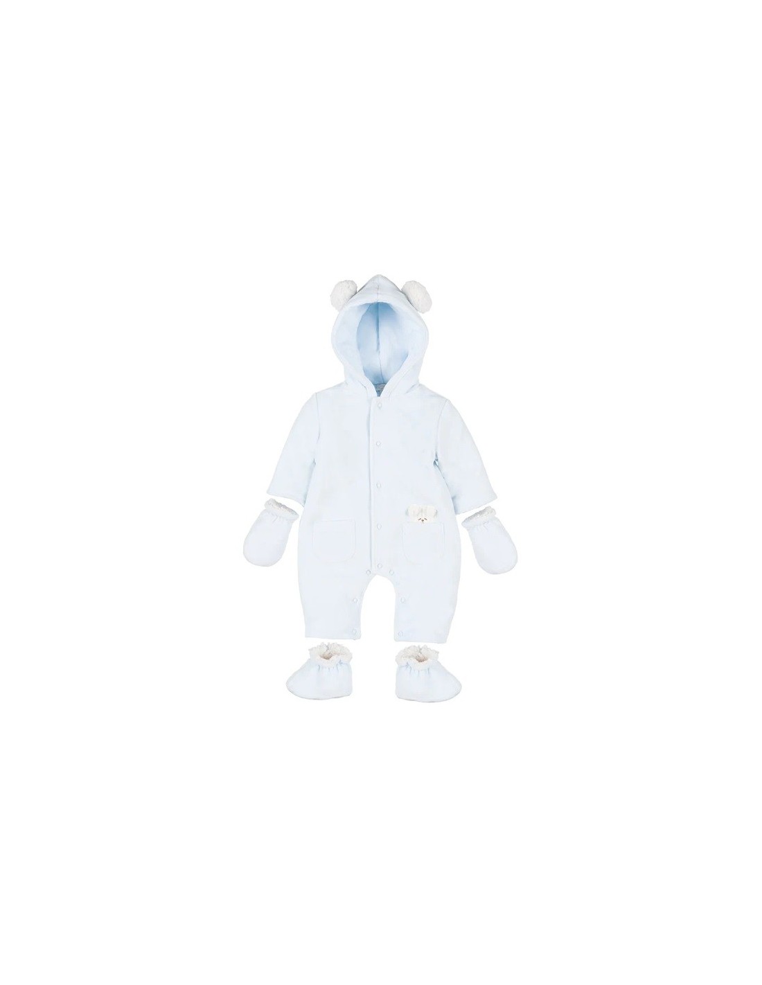 Grazioso tutone imbottito con cappuccio, con tasche frontali e grazioso orsetto.