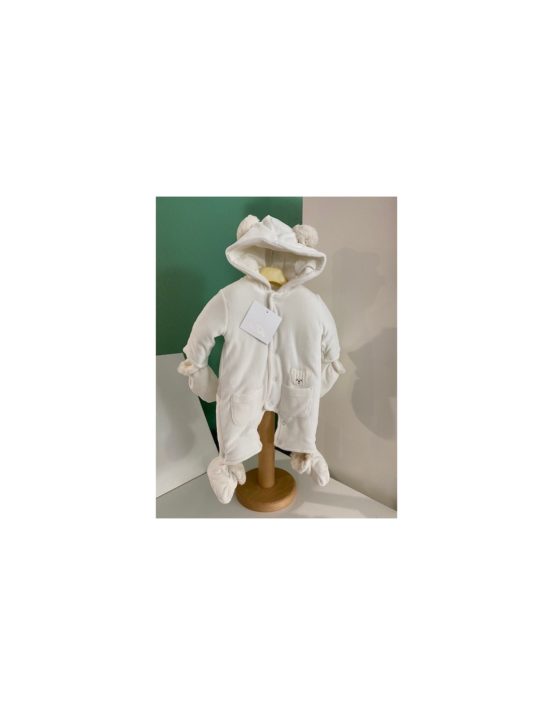 Grazioso tutone imbottito con cappuccio, con tasche frontali e grazioso orsetto.