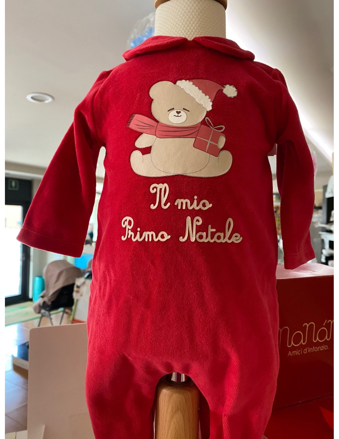 Sei in cerca di un pensierino per un neonato? Eccolo! Il nostro Box Natalizio è composto da un bellissimo bodino "Il mio primo Natale" in caldo cotone, manica lunga, più un ciuccio con catena!