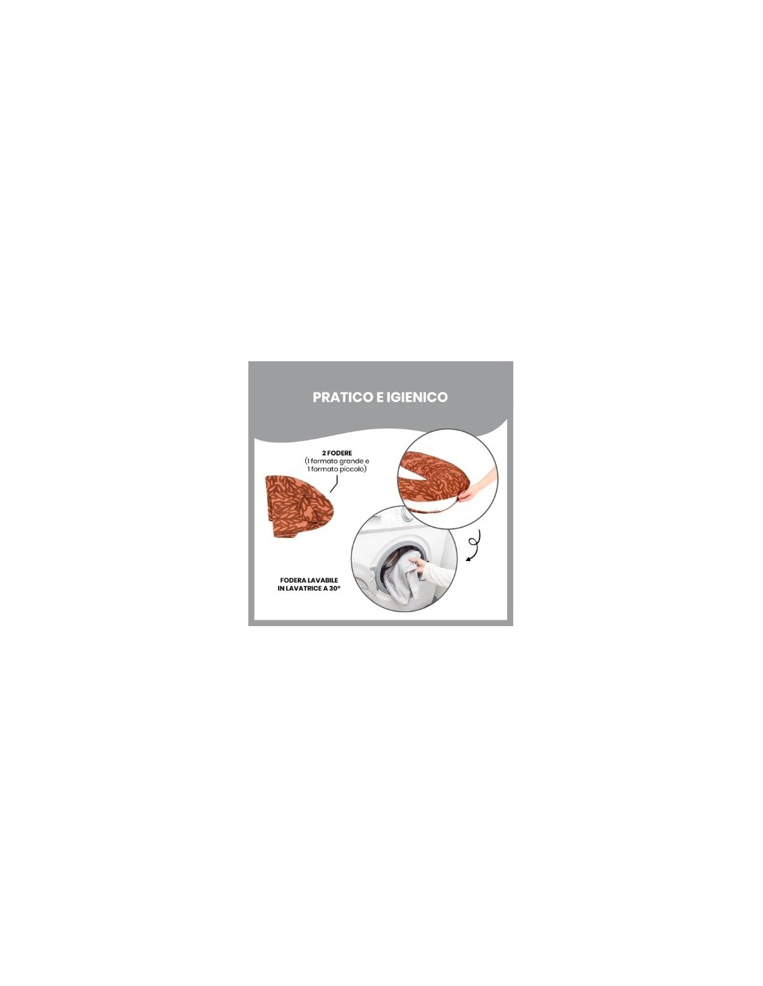 - un cuscino a U lungo e accogliente, perfetto durante la gravidanza per sostenere schiena, gambe e pancia.