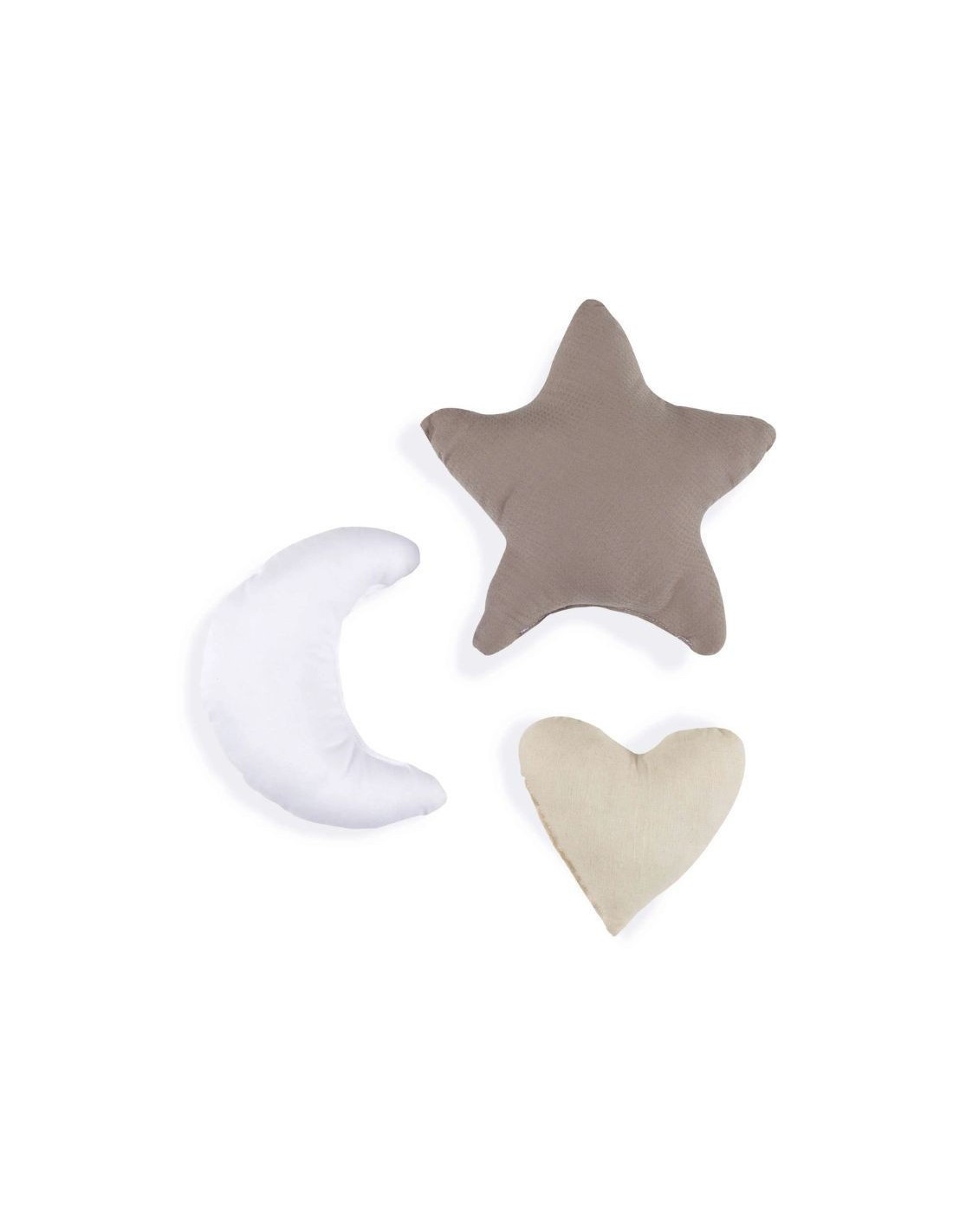 Se stai cercando cuscini decorativi per la culla del tuo bambino, scegli questo set di 3 cuscini Alondra. Il set include un cuscino a forma di cuore, uno a forma di stella e uno a forma di luna.