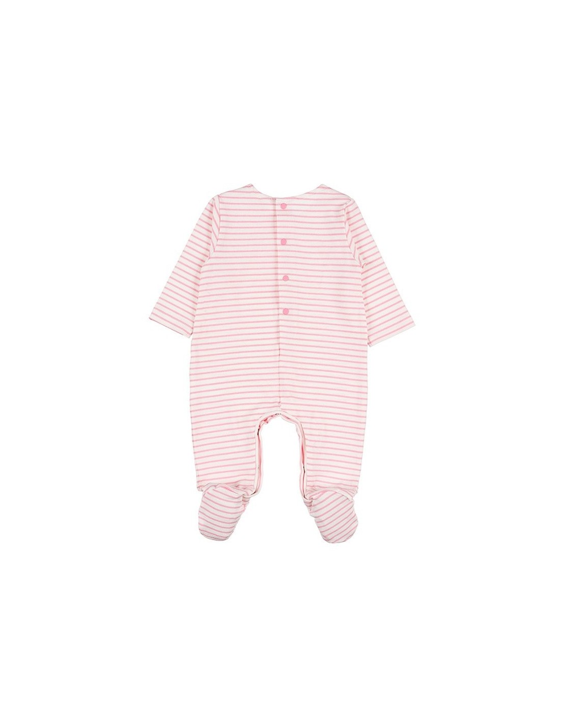 Graziosa tutina in cotone a maniche lunghe rigata di colore rosa, impreziosito dalla dolce scritta centrale "Mi fai perdere la testa". Chiusura con bottoncini a scatto nella parte inferiore e sul retro, rendendo comodo e facile l'indosso.