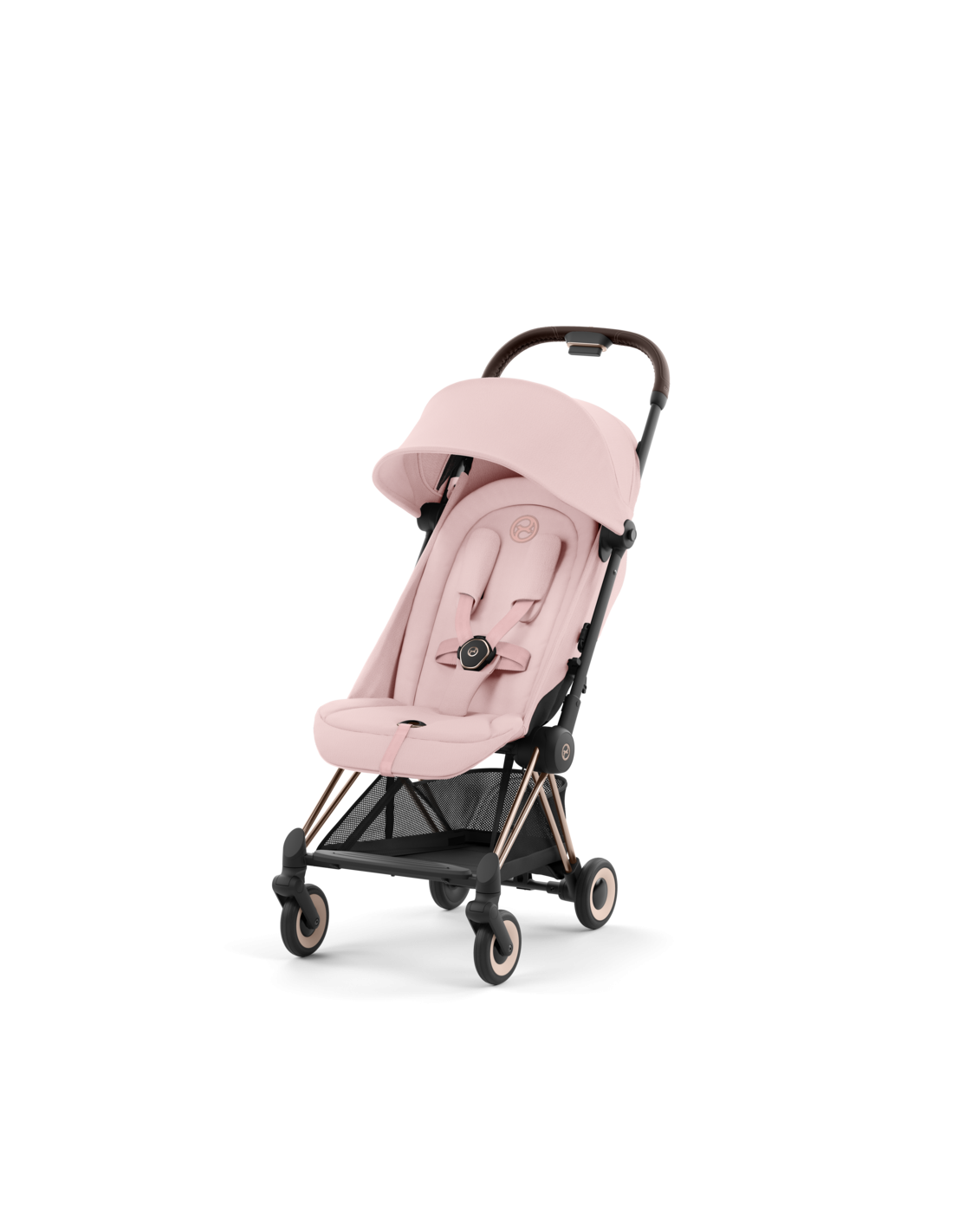 Coya è il primo passeggino leggero della linea Platinum di Cybex, che richiama lo stile dei modelli Priam e Mios, grazie al fantastico telaio con cromatura rosegold.