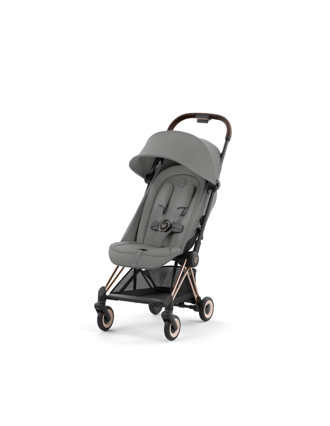 Coya è il primo passeggino leggero della linea Platinum di Cybex, che richiama lo stile dei modelli Priam e Mios, grazie al fantastico telaio con cromatura rosegold.