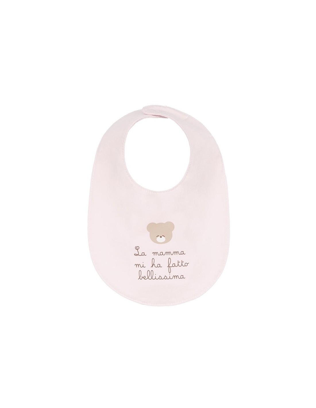 Bavaglino Nanan con scritta "la mamma mi ha fatto bellissima" o "la mamma mi ha fato bellissimo", taglia unica, colore rosa o azzurro.