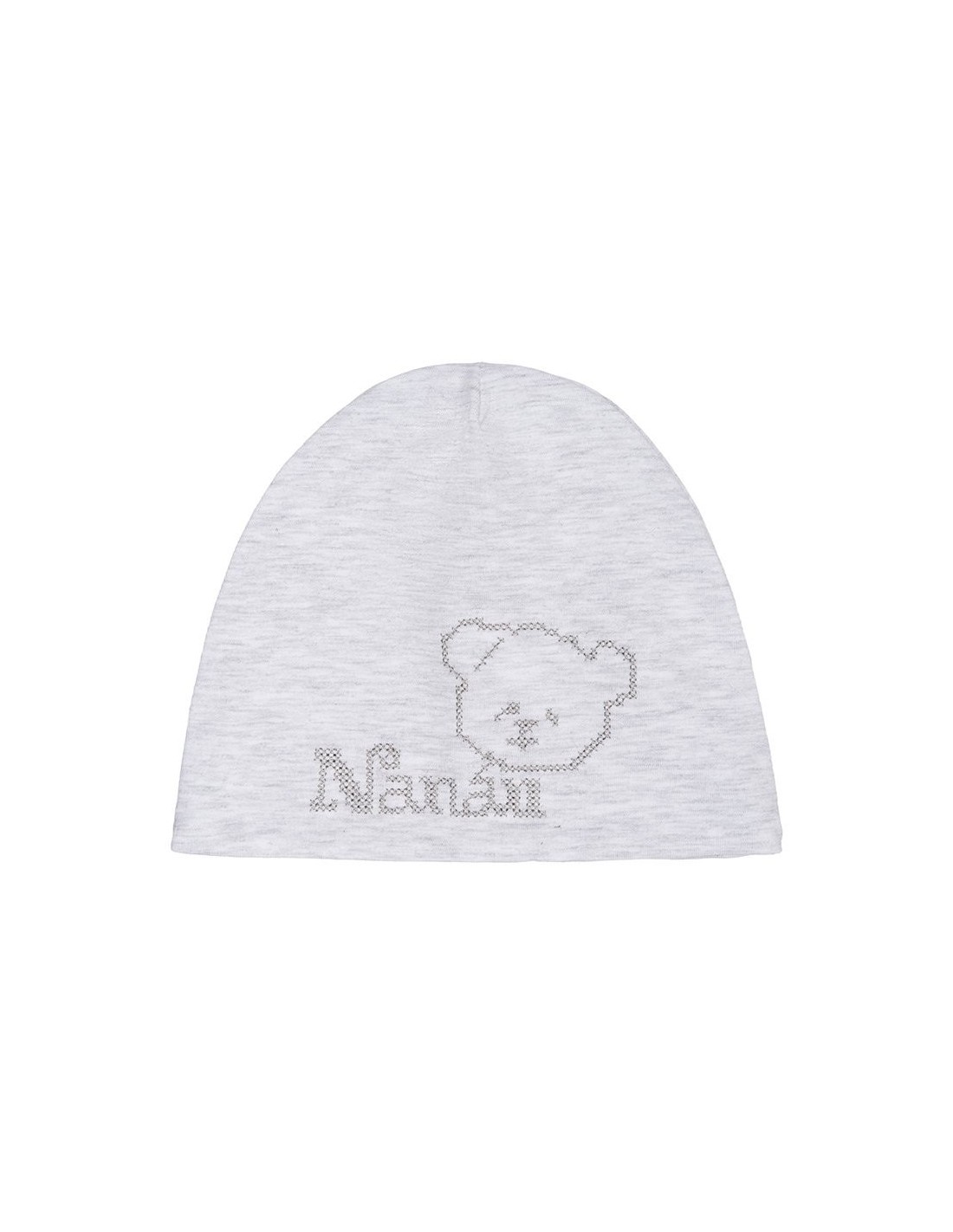 Morbido cappellino in cotone impreziosito dalla scritta “Nanán” e da un dolce orsetto.