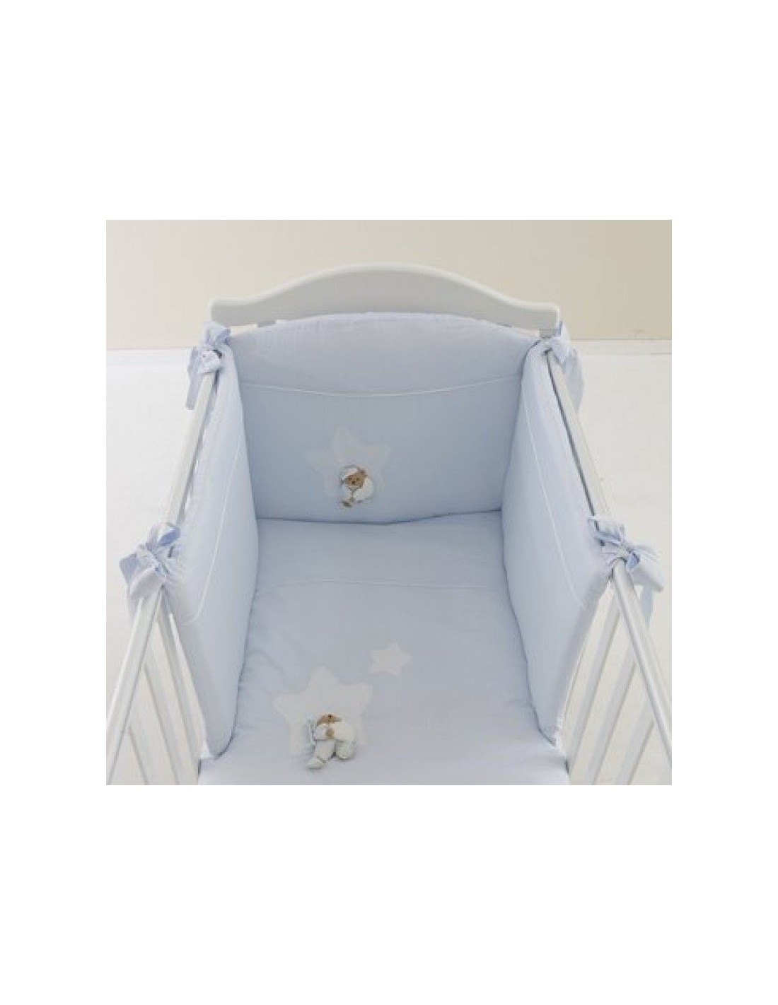 -Dimensione: Piumone 130x150 cm ; Federa per cuscino 40x58cm ; Paracolpi laterali L63xH50 cm – centrale L60xH58 cm