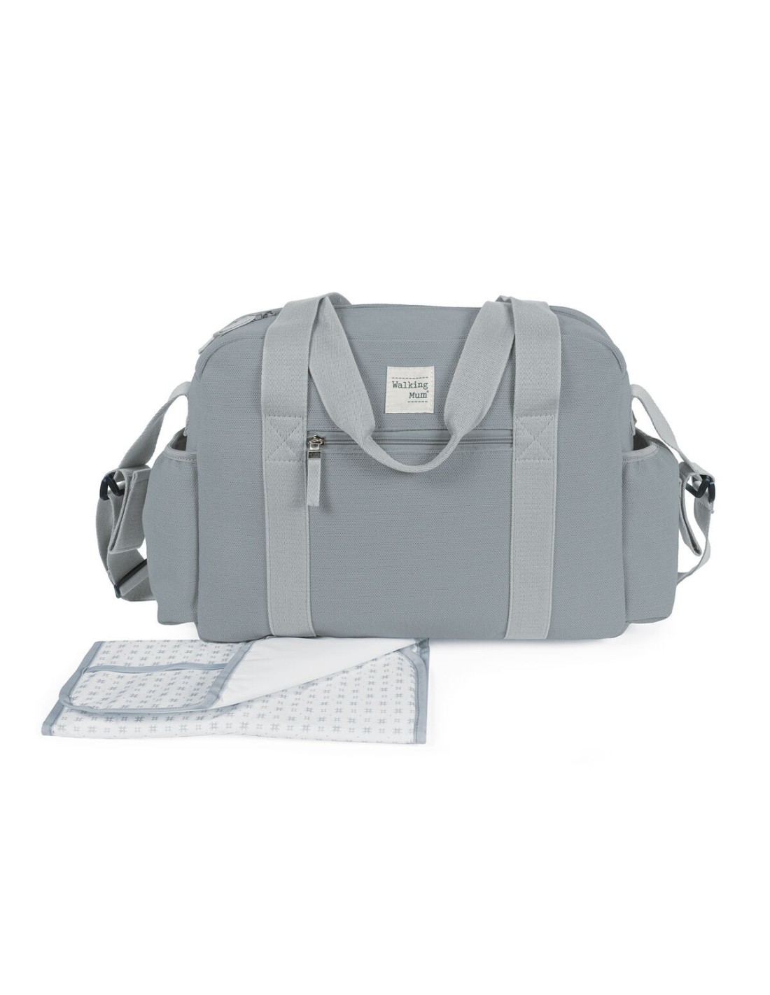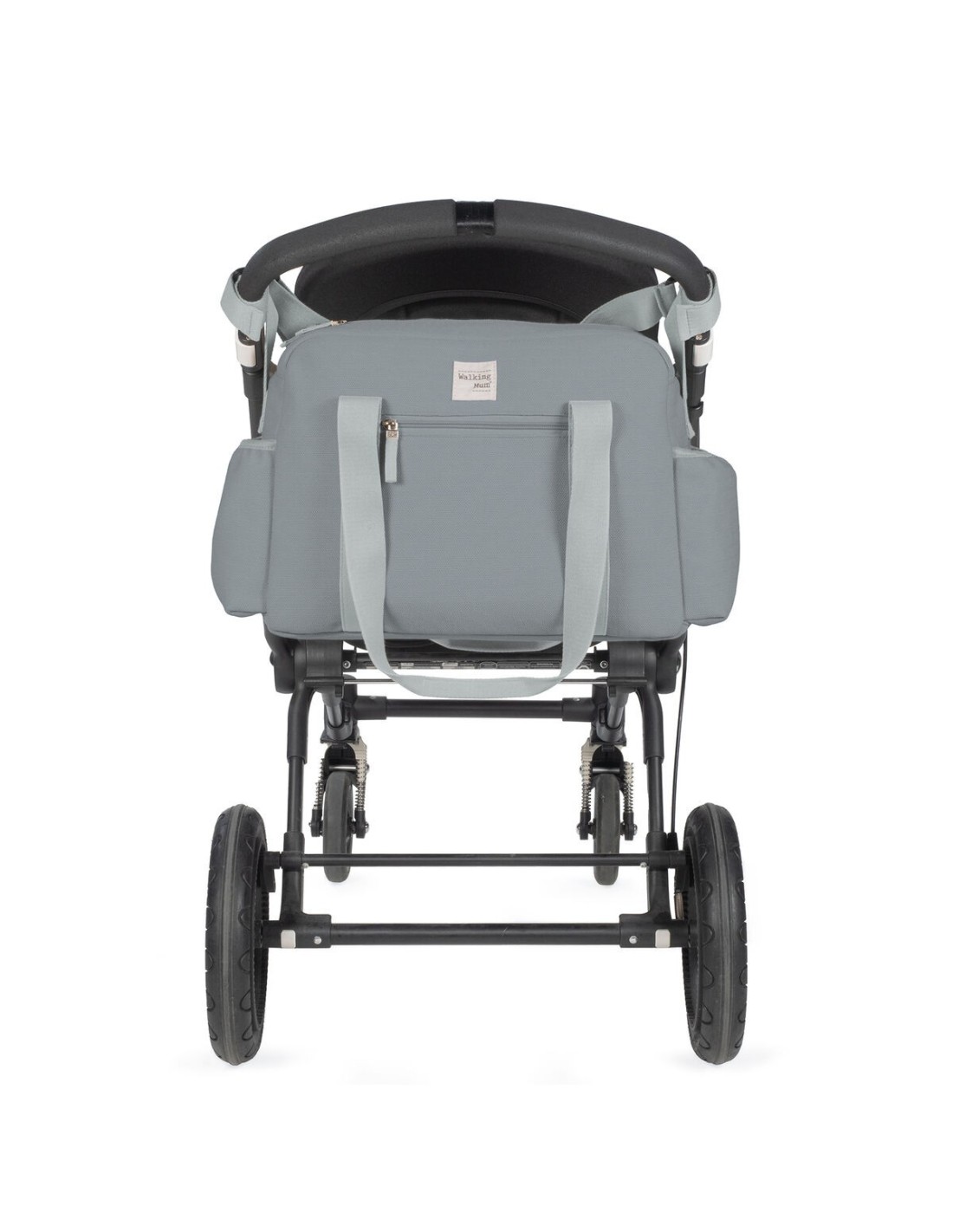 La borsa ha un sistema d’attacco universale con una manica lunga regolabile per appendere alla spalla che include 2 manici corti regolabili per appenderla in qualsiasi modello di passeggino. Incorpora anche maniglie corte per tenerlo a mano.