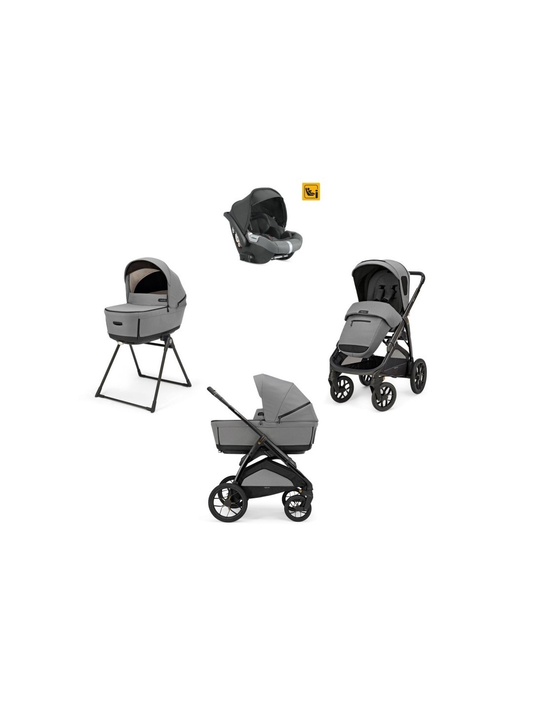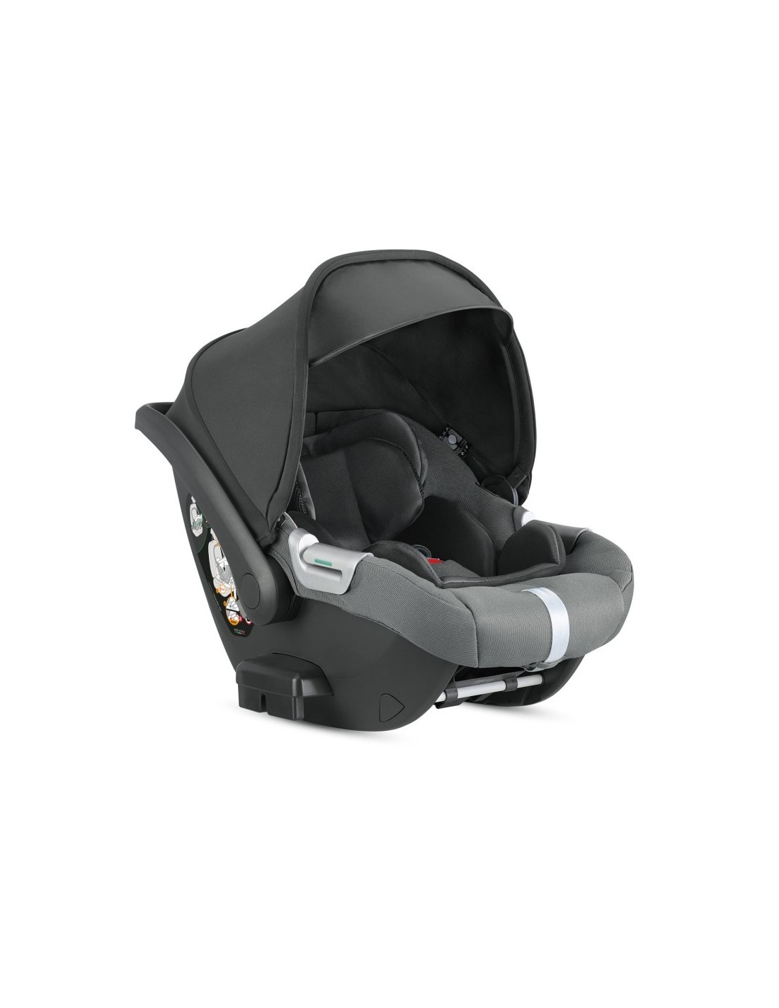 Seggiolino auto reclinabile omologato i-Size, per bambini dai 40 a 75 cm di altezza (dalla nascita fino a 13 mesi). Può essere reclinato sia durante il trasporto in auto, in abbinamento alle basi Darwin i-Size o Darwin 360° i-Size, sia quando agganciato al telaio del passeggino.