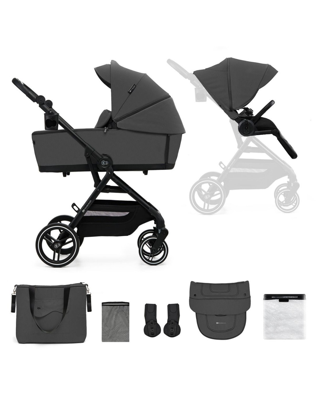 Ampia navicella con doppia zanzariera, comodo passeggino reversibile e ovetto MInk Pro nel colore Graphite Black utilizzabile dalla nascita ai 15 mesi.
