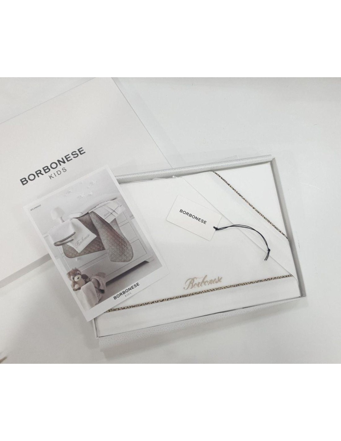 Il set lenzuola letto Splendido Marrone è in percalle di cotone stampato con inserti in piquet millerighe e ricamo. E’ impreziosito dalla stampa del motivo “O.P.”, simbolo della Maison Borbonese.