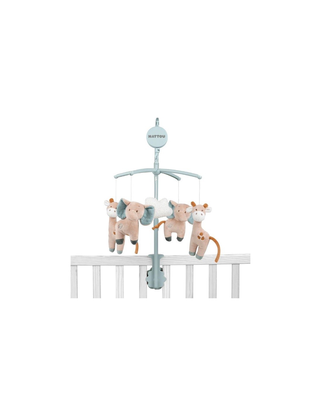 L'adorabile giostrina musicale Nattou è dotata di piccoli animaletti che girano e si muovono al ritmo della ninna nanna. La giostrina può essere fissata comodamente e saldamente al lettino.