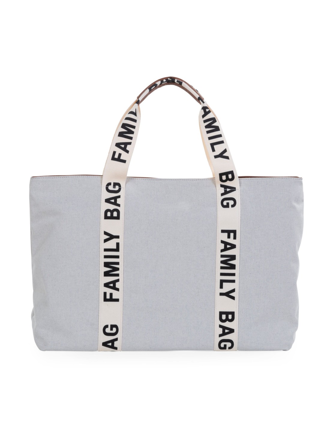 Una borsa superversatile per tutta la famiglia. La scritta “Family Bag” è infatti sui manici, a contrasto con il colore del tessuto della borsa. Un look sportivo e dettagli in pelle.